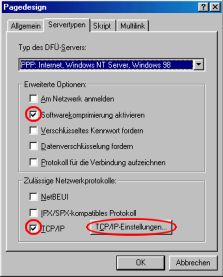 Netzwerkeinstellungen des DFÜ-Netzwerkes.