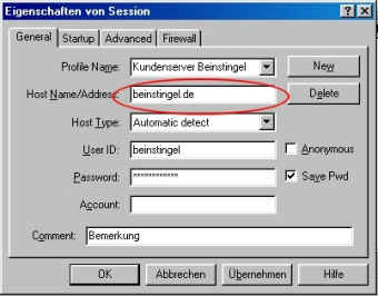 ähnlich, daher bescheibt unser Beispiel den Vorgang nur für das Programm WS_FTP95 LE.